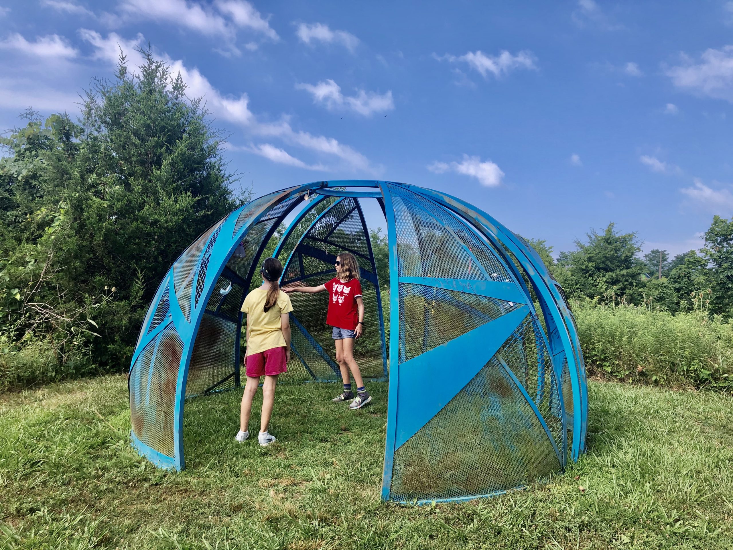 - If you want to engage with the art at Josephine Sculpture Park, bring something organic or metal to leave behind on the dome sculpture. This is another thing we didn’t know about! So, the kids improvised and picked a flower each to intertwine in the sculpture. From what we say, key chains were popular to leave behind.