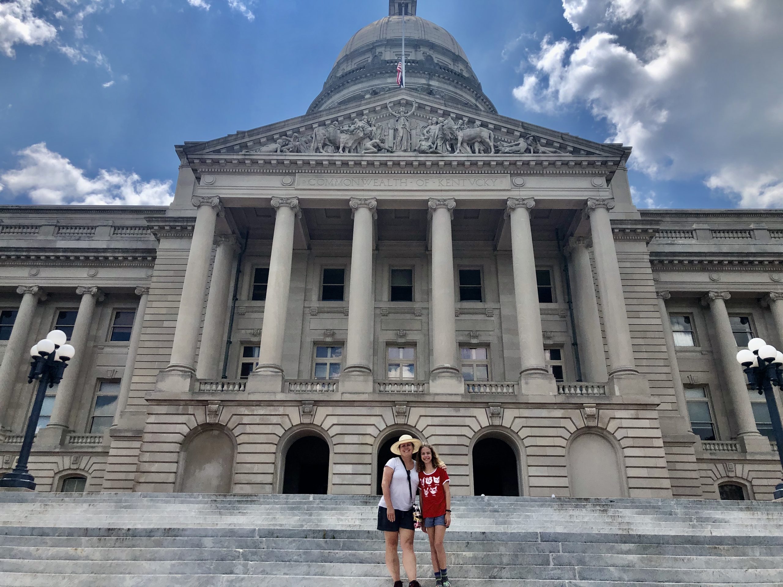 If you want to get closer, take the short drive down to the capital and walk around. Although they are not open now for touring, you can see the gorgeous landscape and interesting markers and do the outdoor walking tour of the grounds with your family.