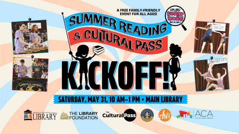 Louisville Free Public Library – A 10 week program for kids (birth up!) to teens. Register online. Get information about the Louisville Cultural Pass by clicking here.