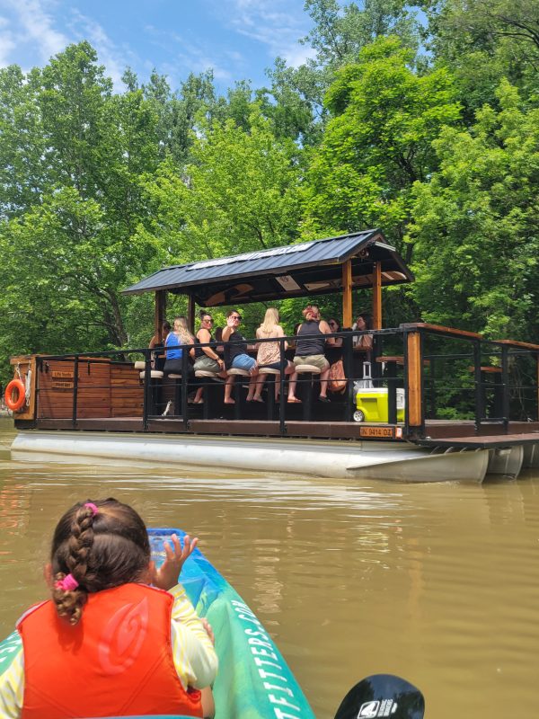 We cruised down three rivers: the St. Mary’s, St. John’s and Maumee. We learned about the history of all three rivers and about the city of Fort Wayne, also known as the Summit City. The narrator talked about Chief LittleTurtle, the first major league baseball game played in the city in which the Yankees and Babe Ruth gave locals a thrilling baseball game. The kids got bingo cards (they had to put a sticker on the item they had spotted) to stay busy and engaged. They saw ducks, cottonwood trees, boats, paddleboards, and statues. By the end of the cruise, if they had a BINGO, they got a prize from the treasure box. Unique opportunity for fun on a weekend getaway to Fort Wayne!