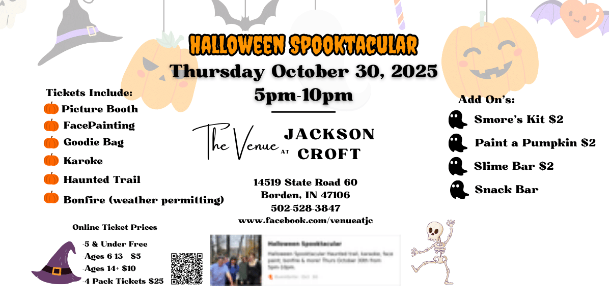 Get ready for a spine-tingling night of family fun and fright at The Venue at Jackson Croft for their 2nd Annual Halloween Spooktacular! They’re bringing back some of your favorite spooky features — plus some new surprises — for a hauntingly good time. Costumes encouraged!