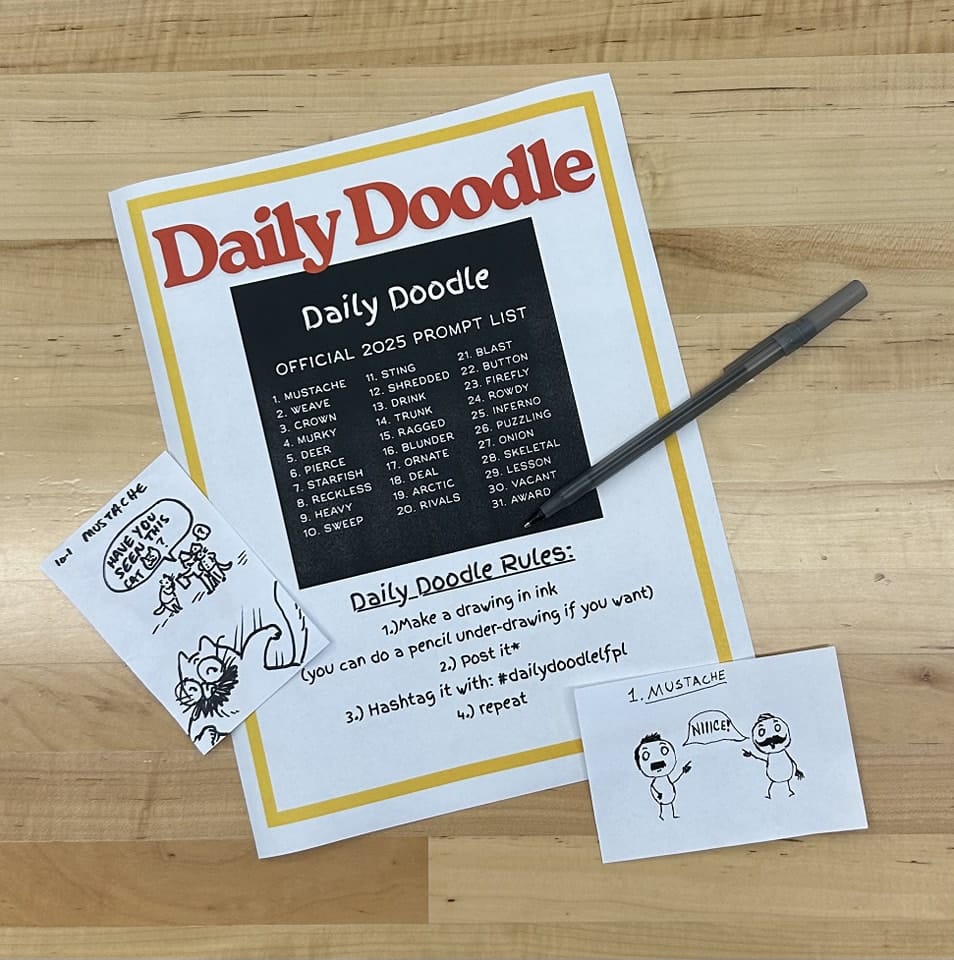 Join the fun with Northeast Regional Library’s Daily Doodle Challenge! Every day this month, there will be a brand-new doodle theme to spark your creativity. Whether you’re a seasoned artist or just love to doodle for fun, everyone’s welcome!