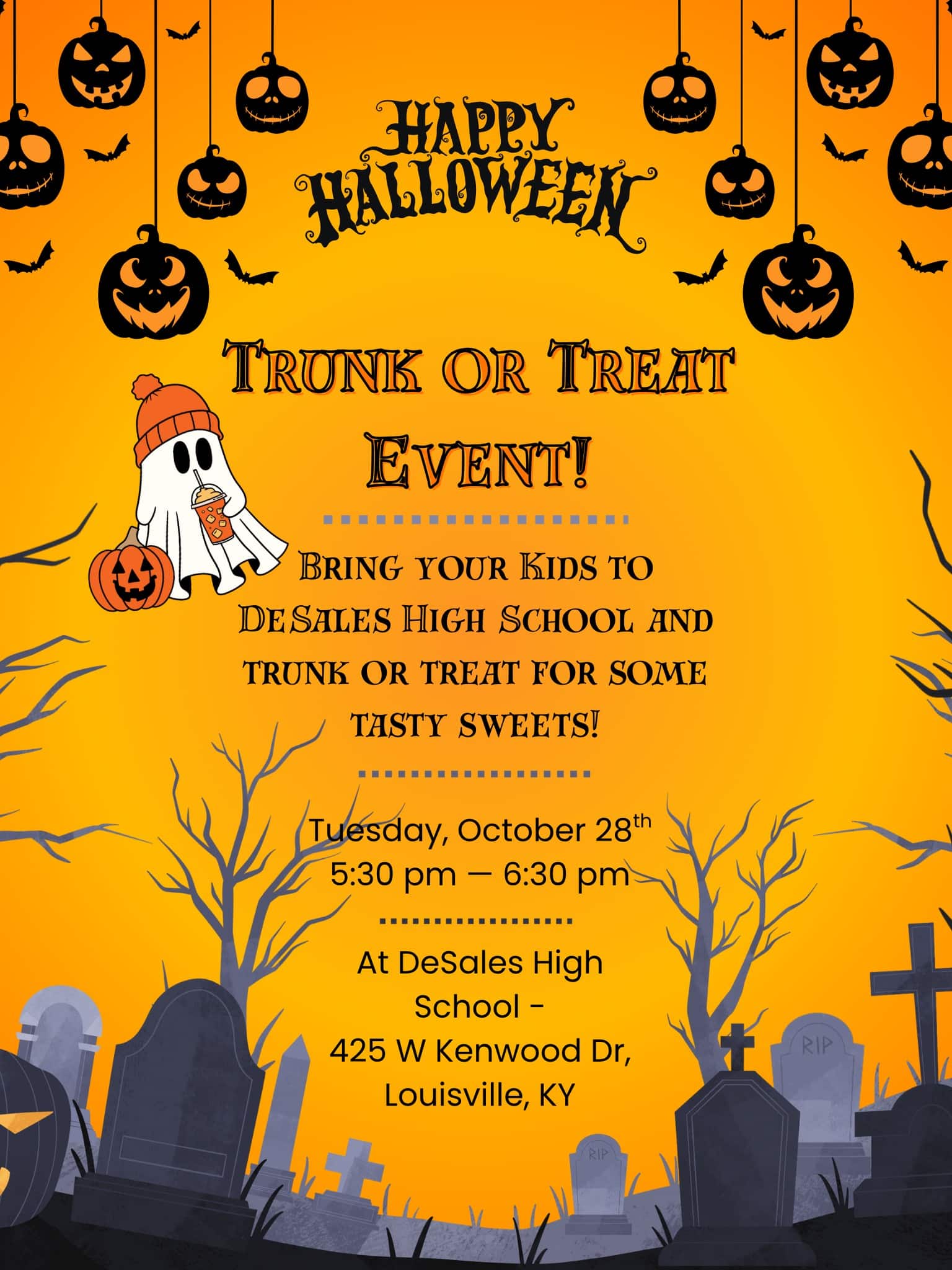 Head over to DeSales High School on Tuesday for a fun Trunk or Treat! 5:30-6:30pm