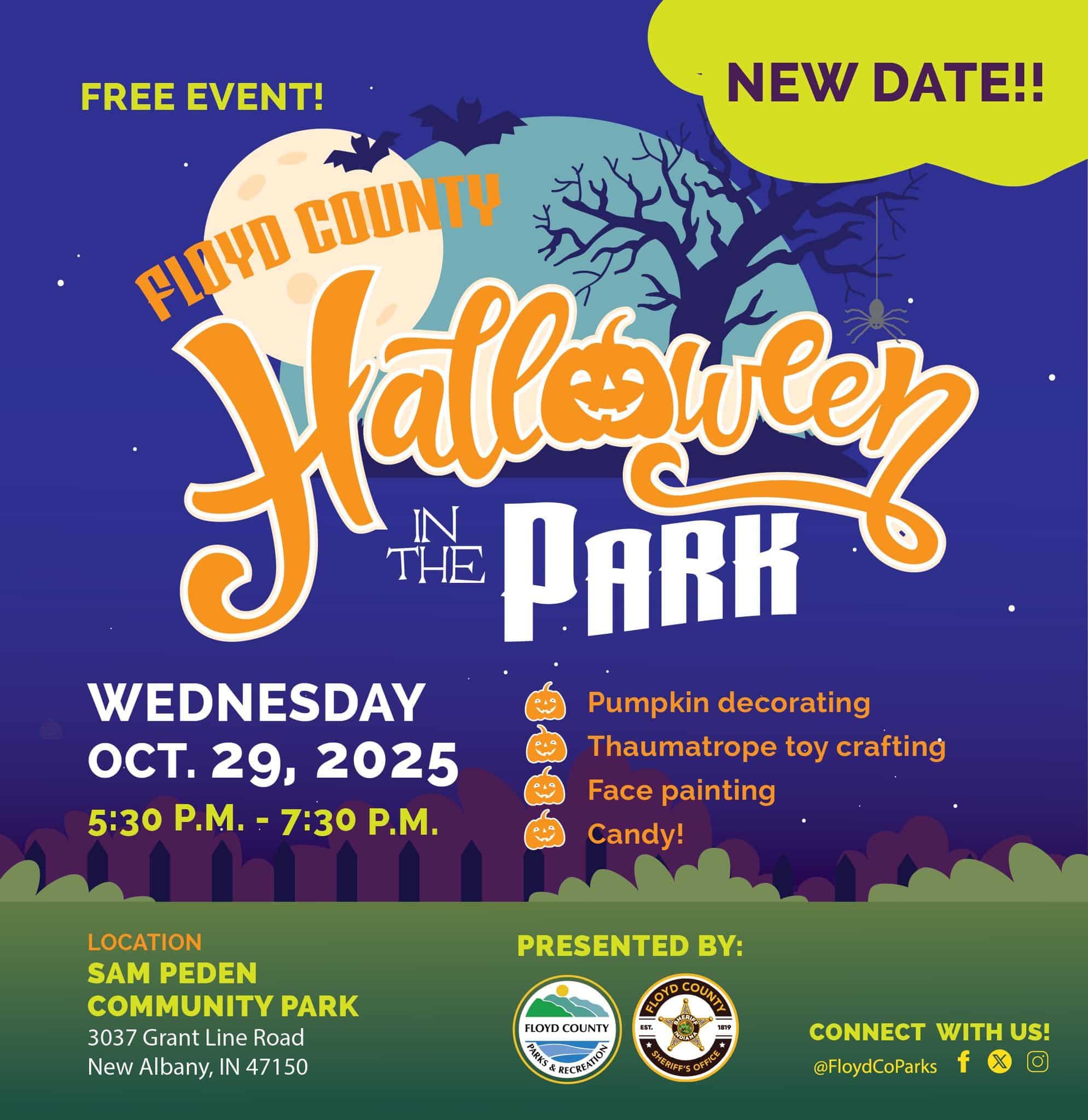 Following the weather-related cancelation of their original event, a scaled-down version of 𝐅𝐥𝐨𝐲𝐝 𝐂𝐨𝐮𝐧𝐭𝐲 𝐇𝐚𝐥𝐥𝐨𝐰𝐞𝐞𝐧 𝐢𝐧 𝐭𝐡𝐞 𝐏𝐚𝐫𝐤 has been rescheduled for Wednesday from 5:30-7:30pm!